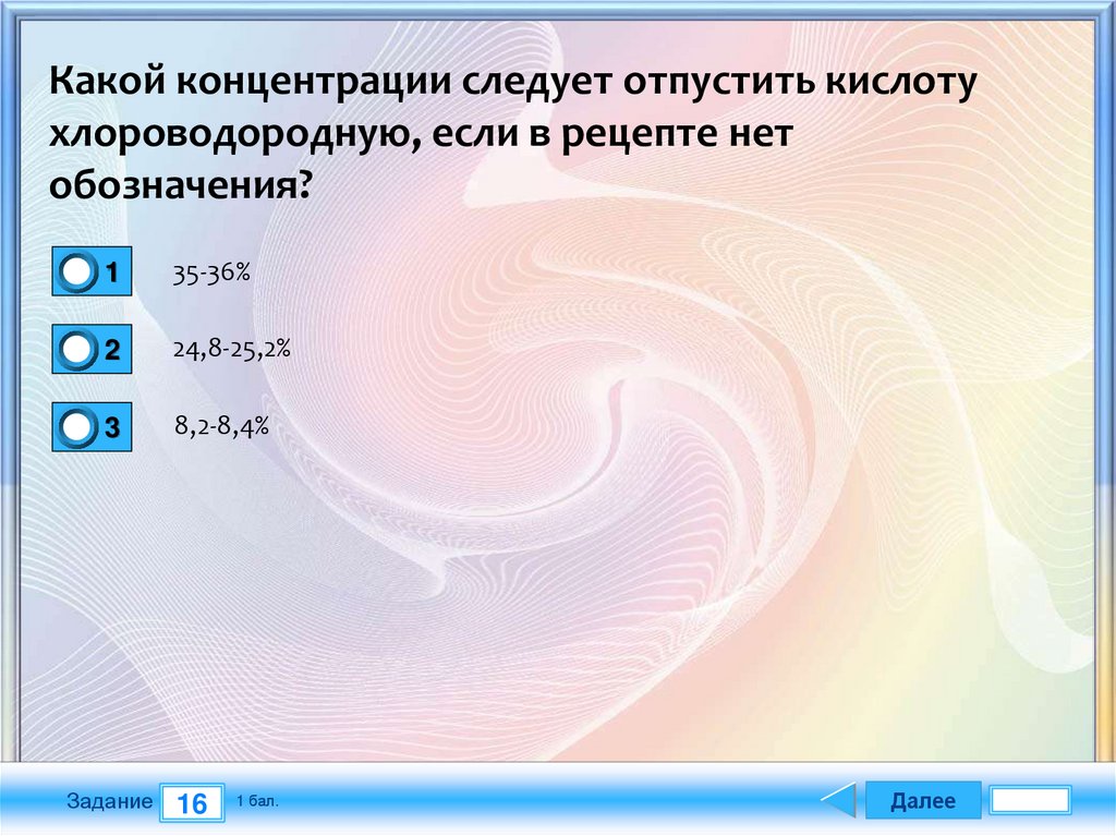 Какой концентрации следует отпустить кислотухлороводородную, если в рецепте нет
