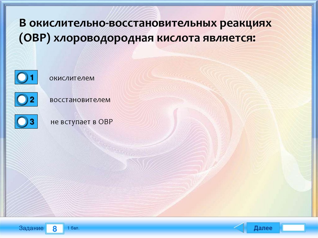 В окислительно-восстановительных реакциях(ОВР) хлороводородная кислота является: