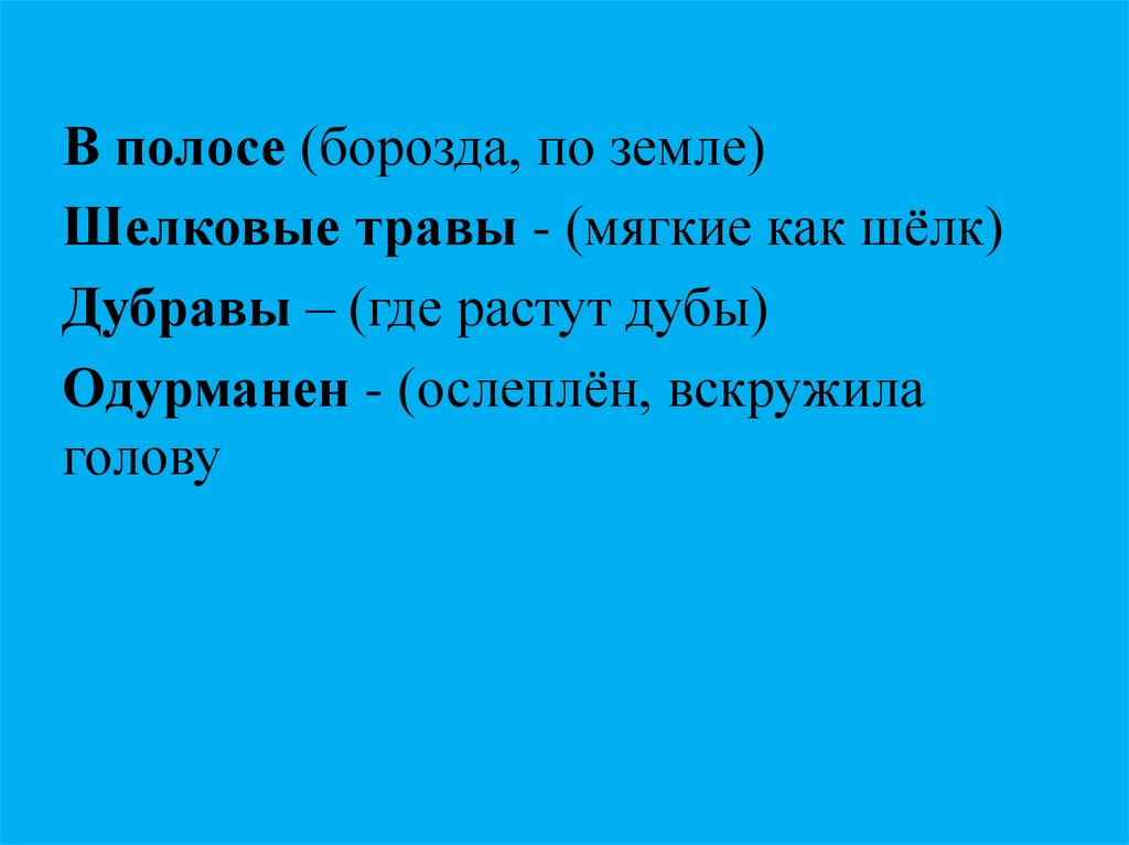 В полосе (борозда, по земле)Шелковые травы - (мягкие как шёлк)