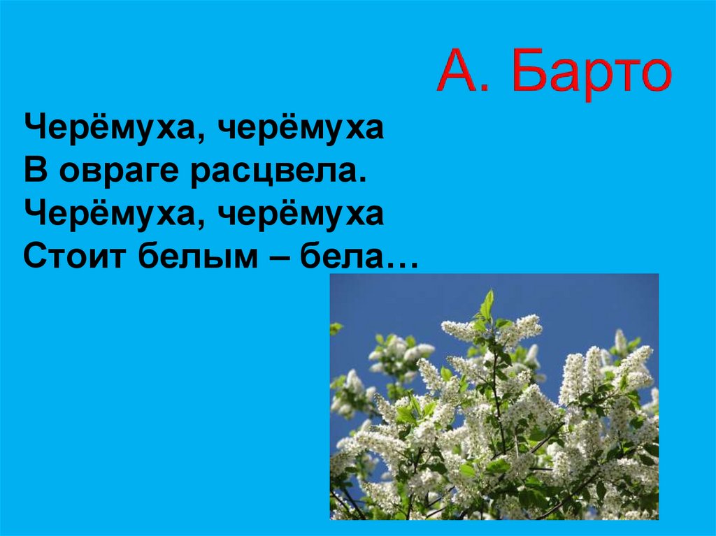 Черёмуха, черёмухаВ овраге расцвела.