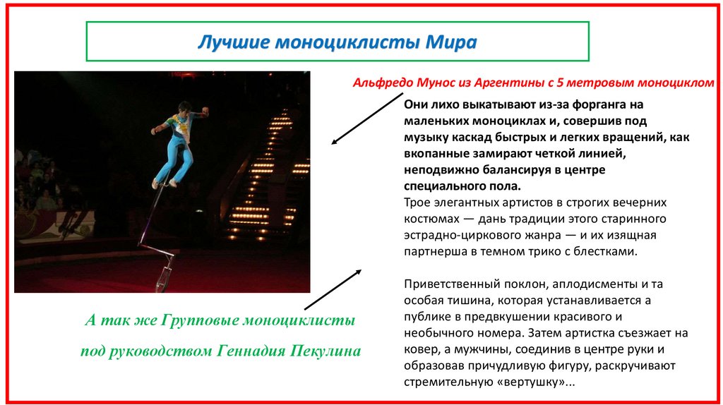 Лучшие моноциклисты МираАльфредо Мунос из Аргентины с 5 метровым моноциклом