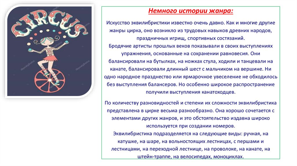 Немного истории жанра:Искусство эквилибристики известно очень давно. Как и многие другие