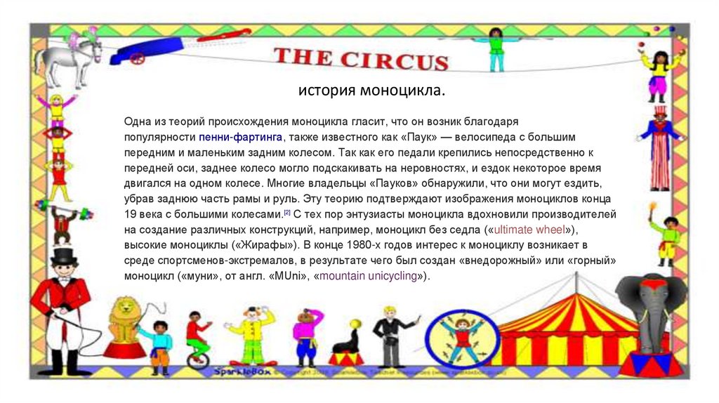 история моноцикла.Одна из теорий происхождения моноцикла гласит, что он возник благодаря