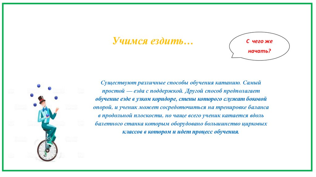 опорой, и ученик может сосредоточиться на тренировке баланса