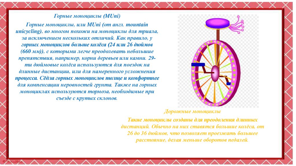 процесса. Сёдла горных моноциклов толще и комфортнее