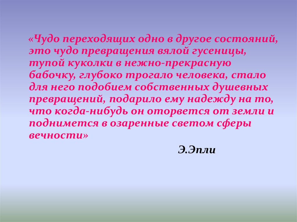 «Чудо переходящих одно в другое состояний,это чудо превращения вялой гусеницы,