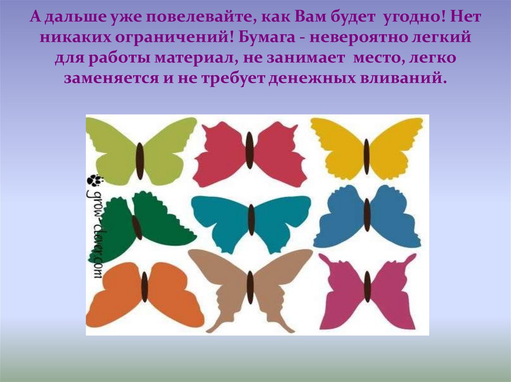 А дальше уже повелевайте, как Вам будет угодно! Нетникаких ограничений! Бумага - невероятно легкий