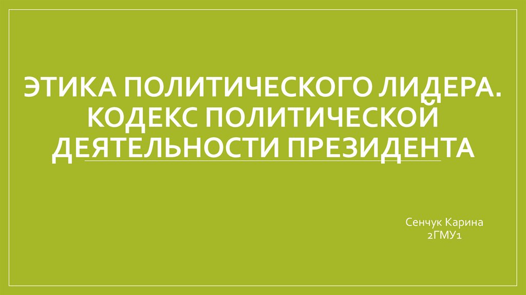 ЭТИКА ПОЛИТИЧЕСКОГО ЛИДЕРА.КОДЕКС ПОЛИТИЧЕСКОЙ