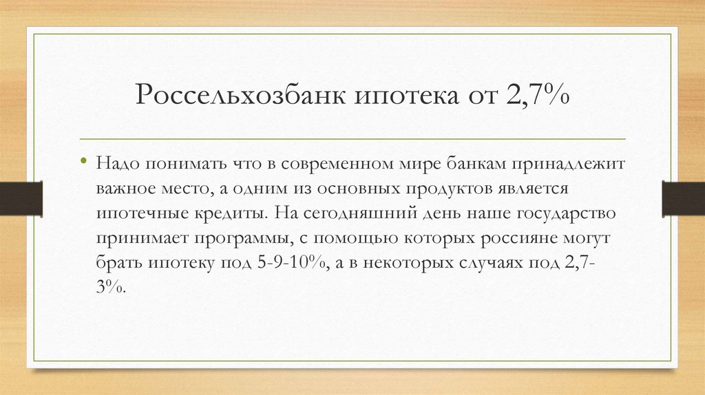 Россельхозбанк ипотека от 2,7%• Надо понимать что в современном мире банкам принадлежит