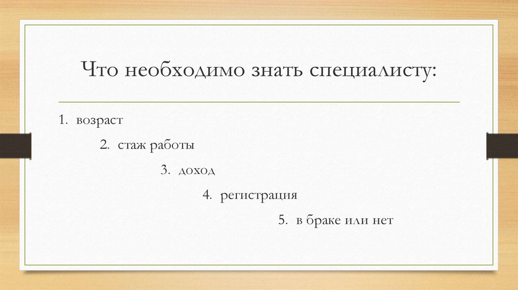 Что необходимо знать специалисту:1. возраст