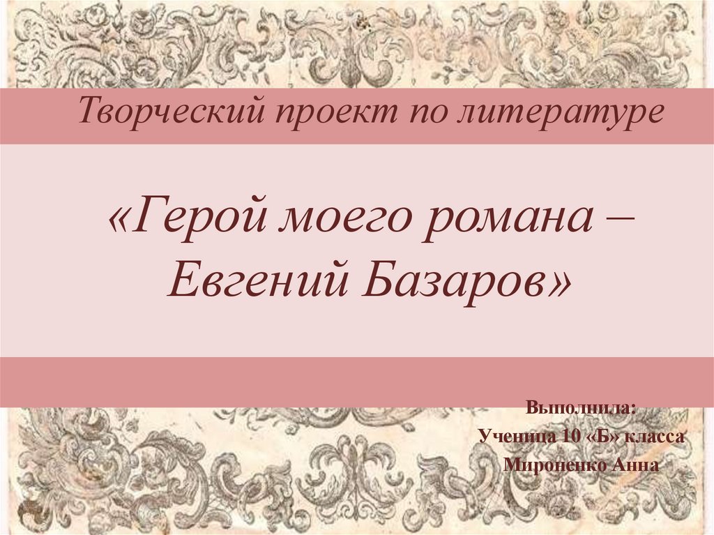 Герой моего романа – Евгений Базаров