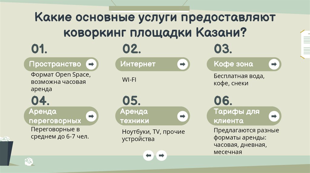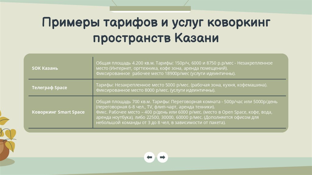 Примеры тарифов и услуг коворкингпространств Казани