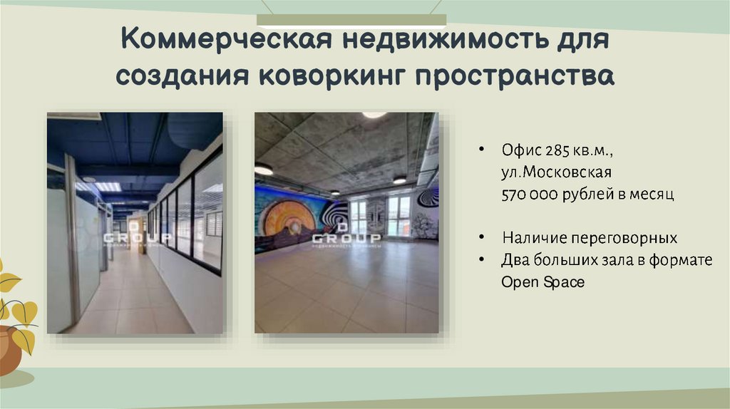 Коммерческая недвижимость длясоздания коворкинг пространства