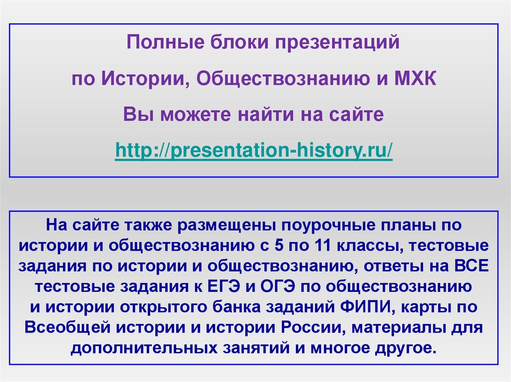Полные блоки презентацийпо Истории, Обществознанию и МХК