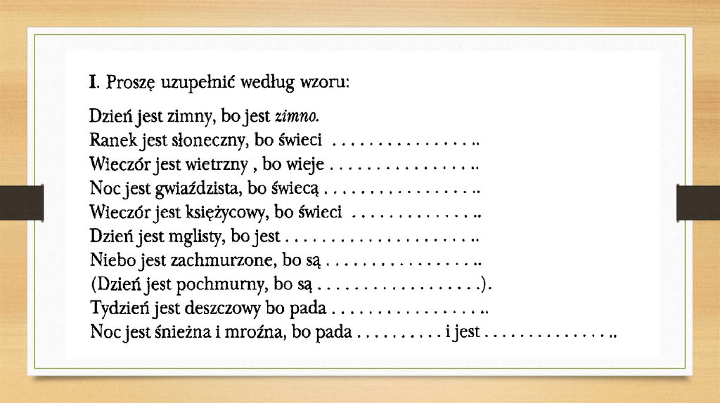 • Opisać ulubioną porę roku (15 zdań)