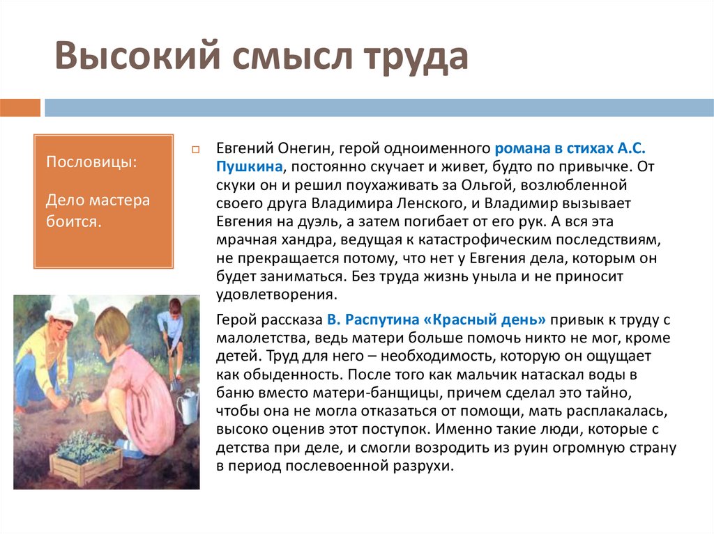 Герой рассказа В. Распутина «Красный день» привык к труду с