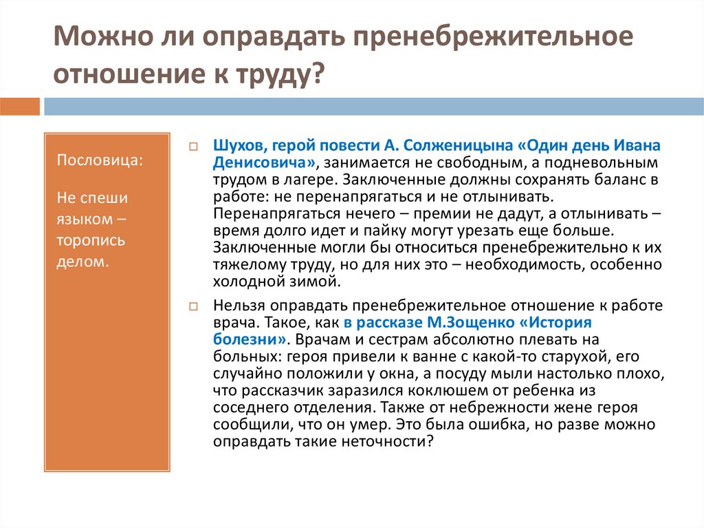 Можно ли оправдать пренебрежительноеотношение к труду?