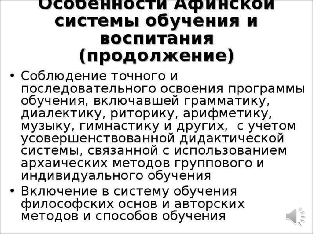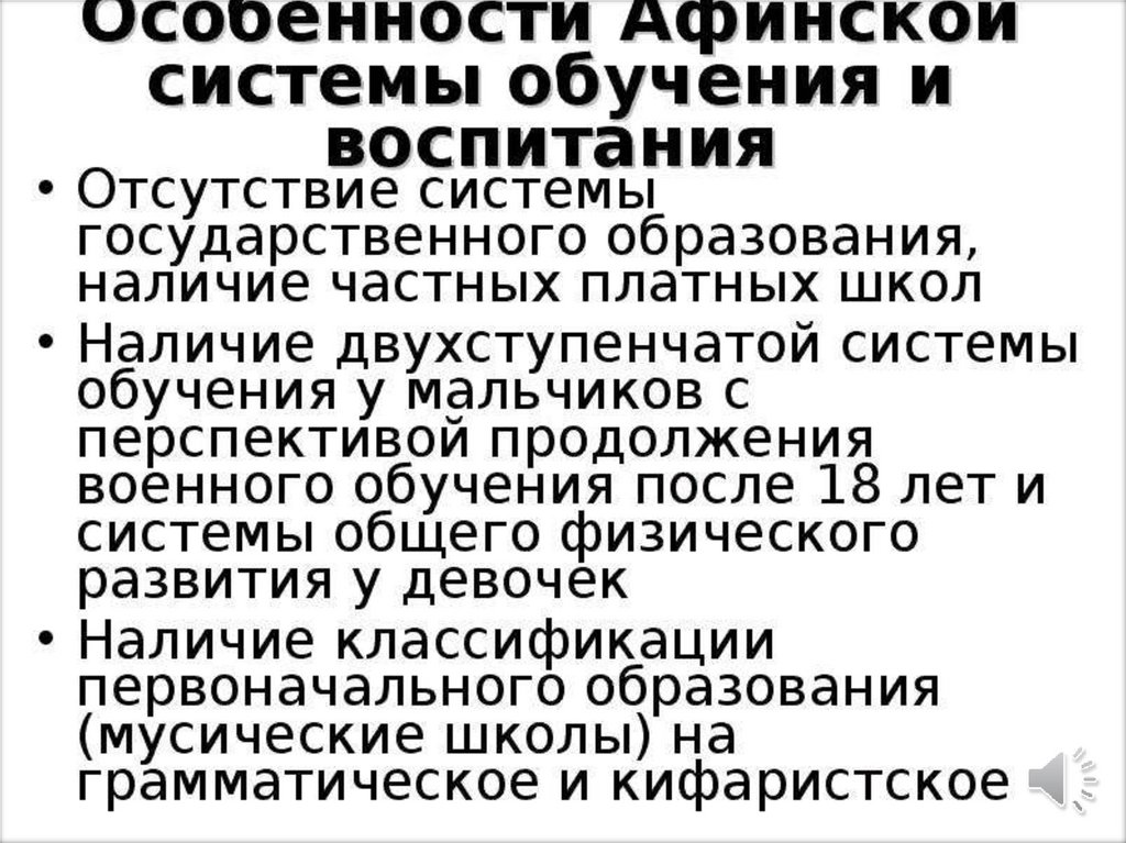 Педагогика в Древней Греции. Афины. Система афинского воспитания