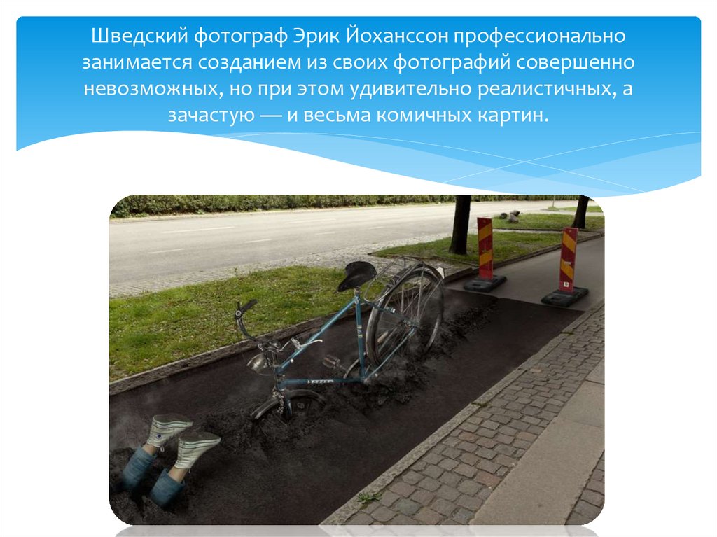 Шведский фотограф Эрик Йоханссон профессиональнозанимается созданием из своих фотографий совершенно