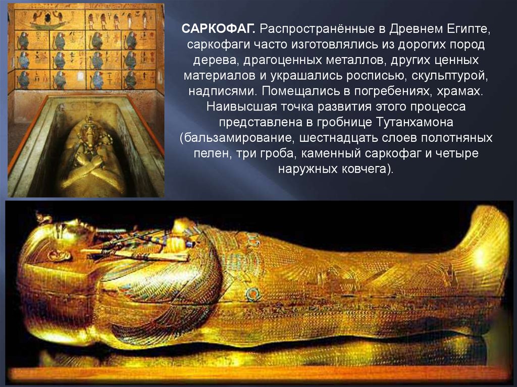САРКОФАГ. Распространённые в Древнем Египте,саркофаги часто изготовлялись из дорогих пород