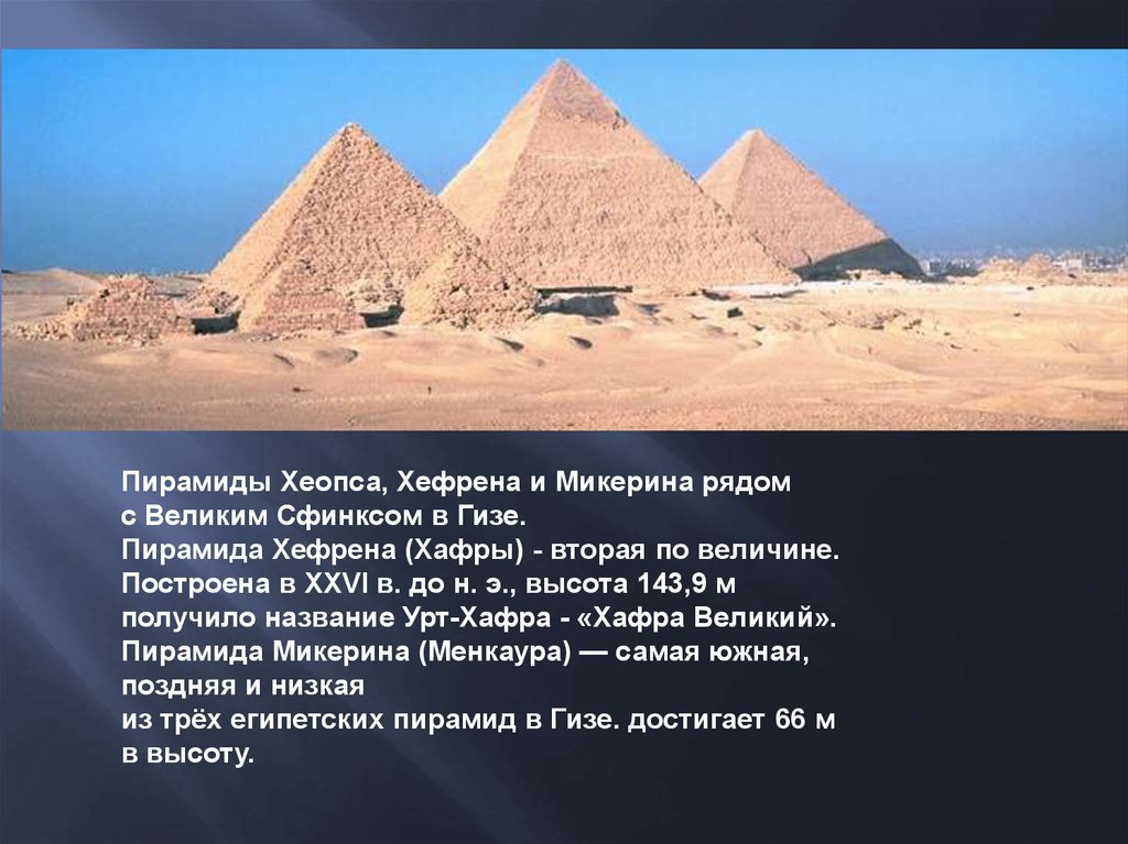из трёх египетских пирамид в Гизе. достигает 66 м