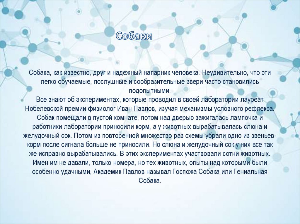 особенно удачными, Академик Павлов называл Госпожа Собака или Гениальная