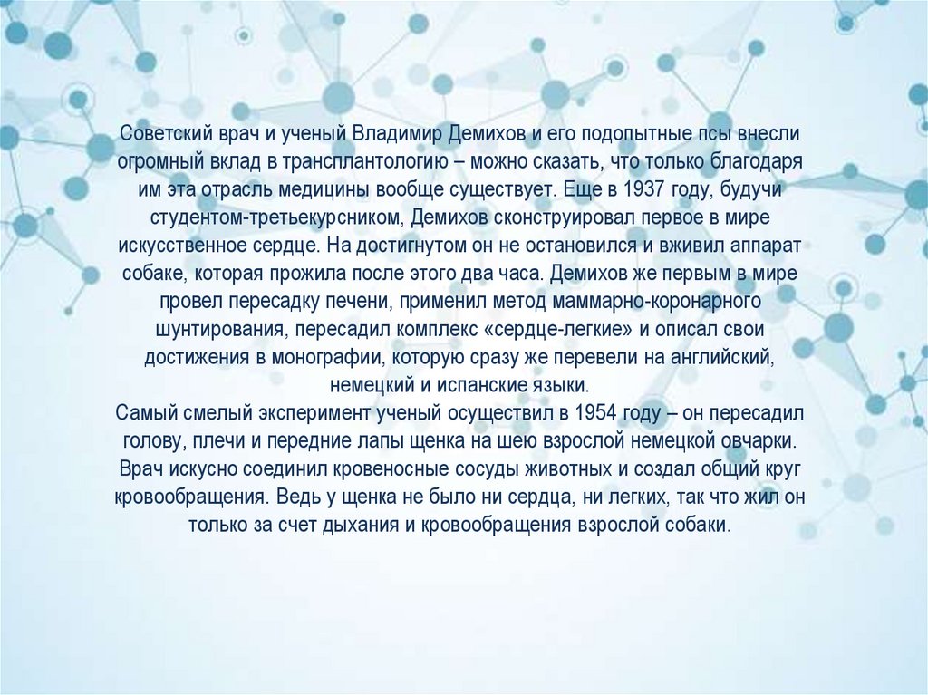 Советский врач и ученый Владимир Демихов и его подопытные псы внеслиогромный вклад в трансплантологию – можно сказать, что только благодаря