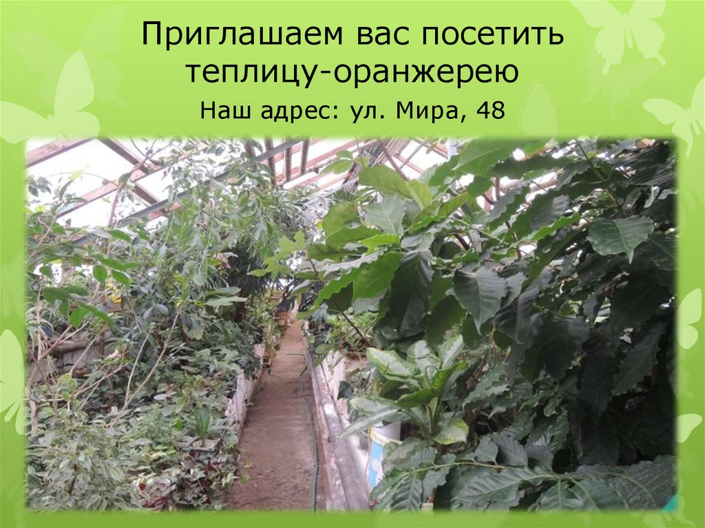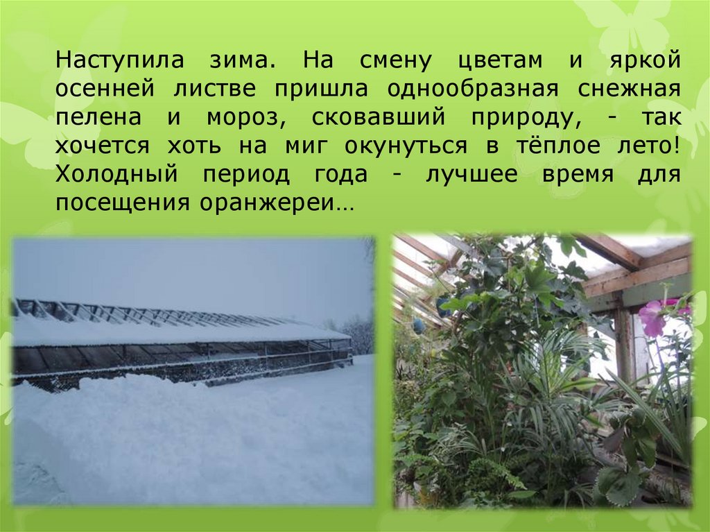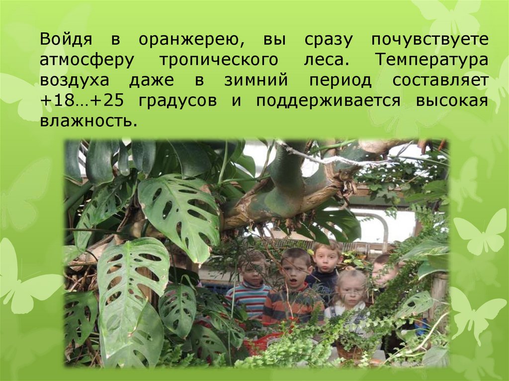 Войдя в оранжерею, вы сразу почувствуетеатмосферу тропического леса. Температура