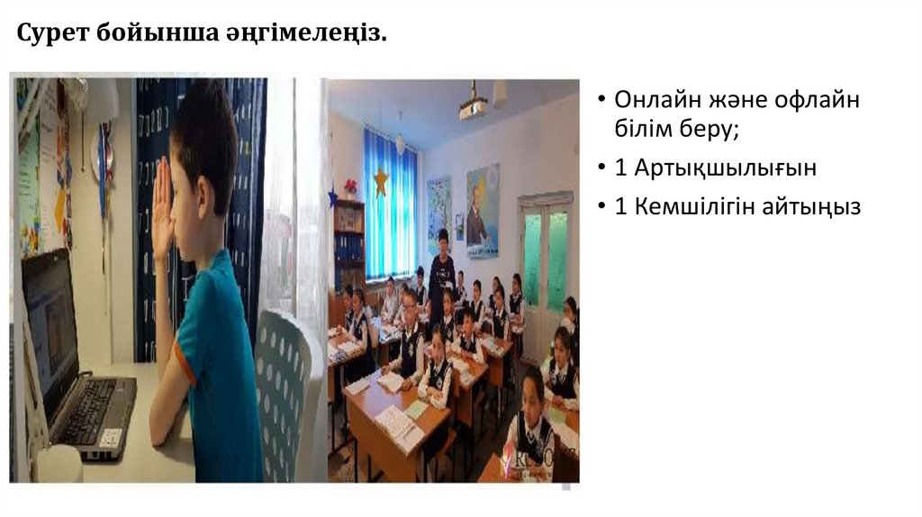 Сурет бойынша әңгімелеңіз.• Онлайн және офлайн