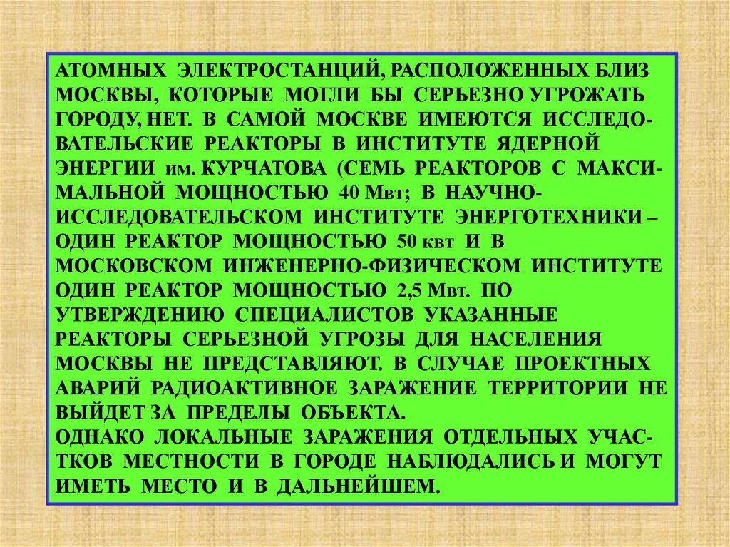 « ХАРАКТЕРИСТИКА ВОЗМОЖНЫХ СТИХИЙНЫХ БЕДСТВИЙ, АВАРИЙ И КАТАСТРОФ В Г. МОСКВЕ».