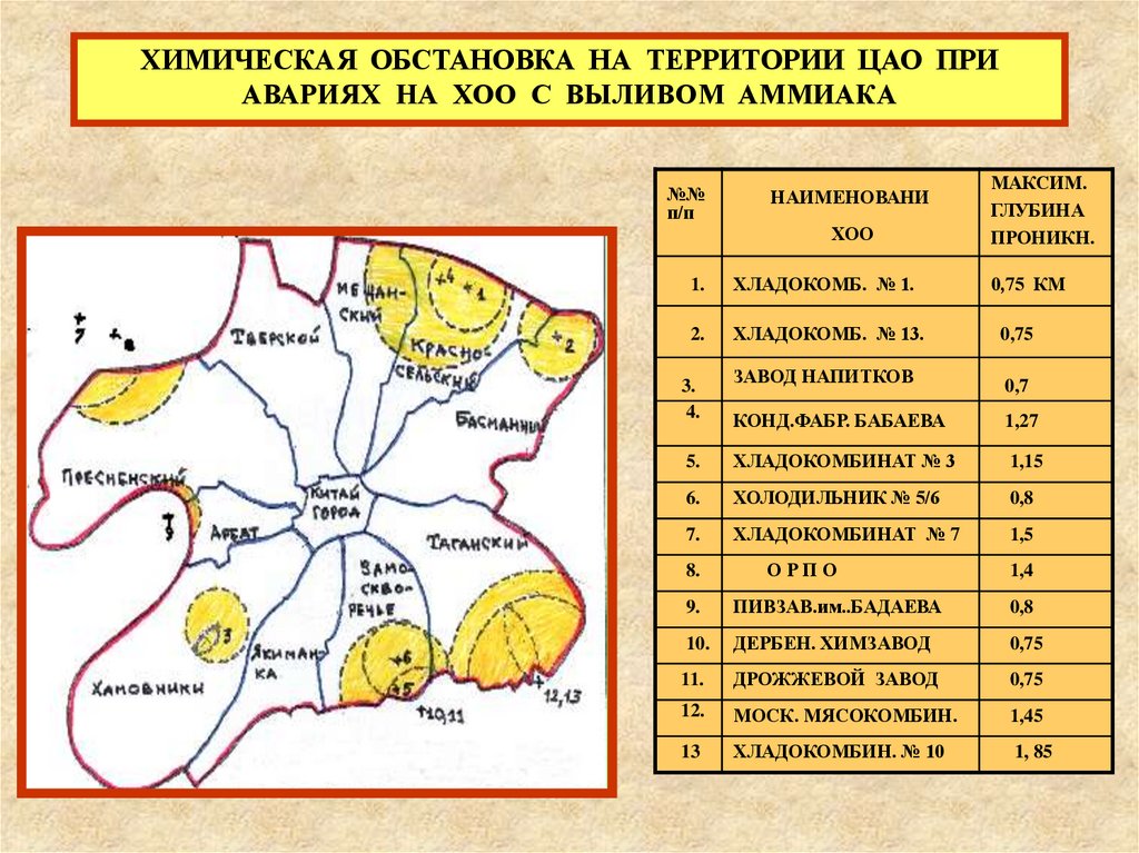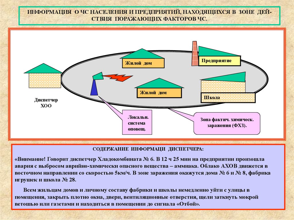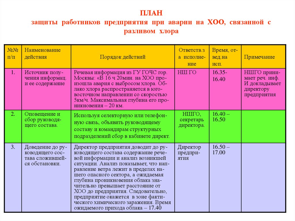 предприятие окажется в зоне фактического химического заражения. Время