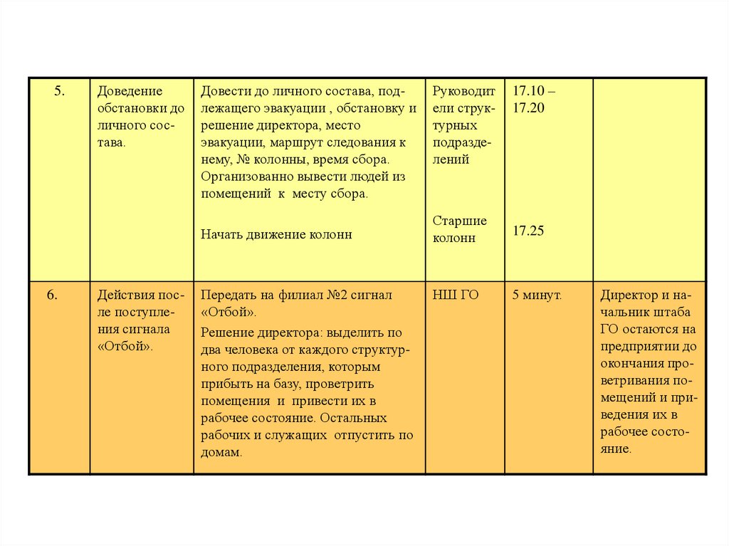 сотрудников, доложить обстановку
