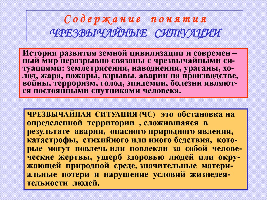 Содержание понятияЧРЕЗВЫЧАЙНЫЕ СИТУАЦИИ
