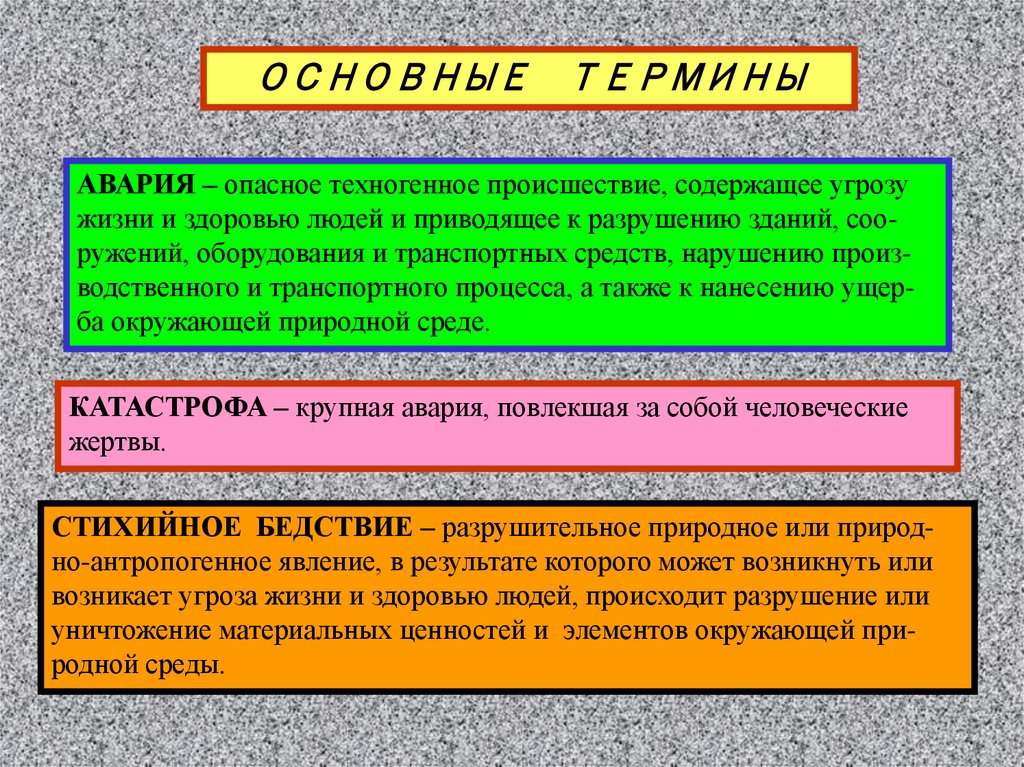 ОСНОВНЫЕ ТЕРМИНЫАВАРИЯ – опасное техногенное происшествие, содержащее угрозу