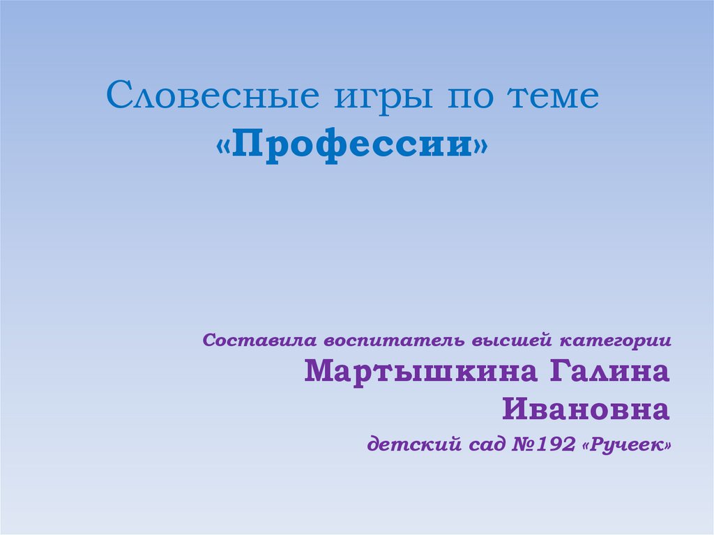 Словесные игры по теме«Профессии»