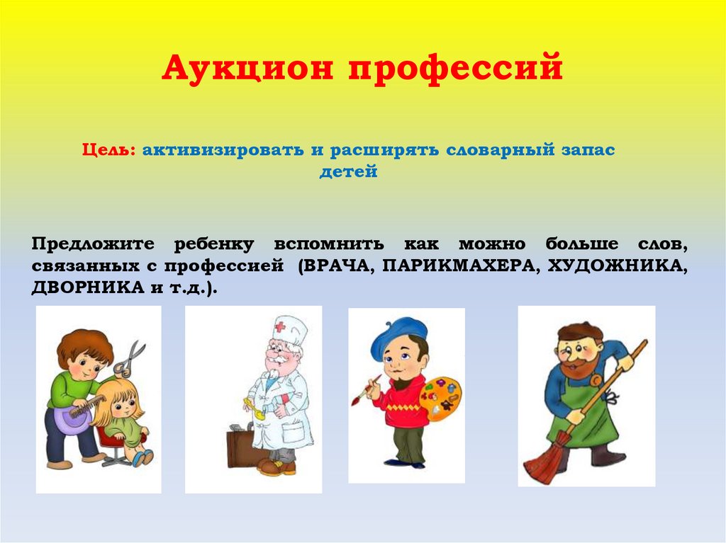Аукцион профессийЦель: активизировать и расширять словарный запас
