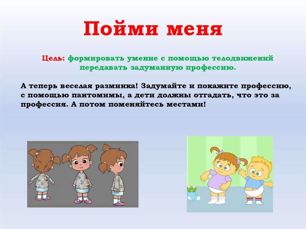Пойми меняЦель: формировать умение с помощью телодвижений