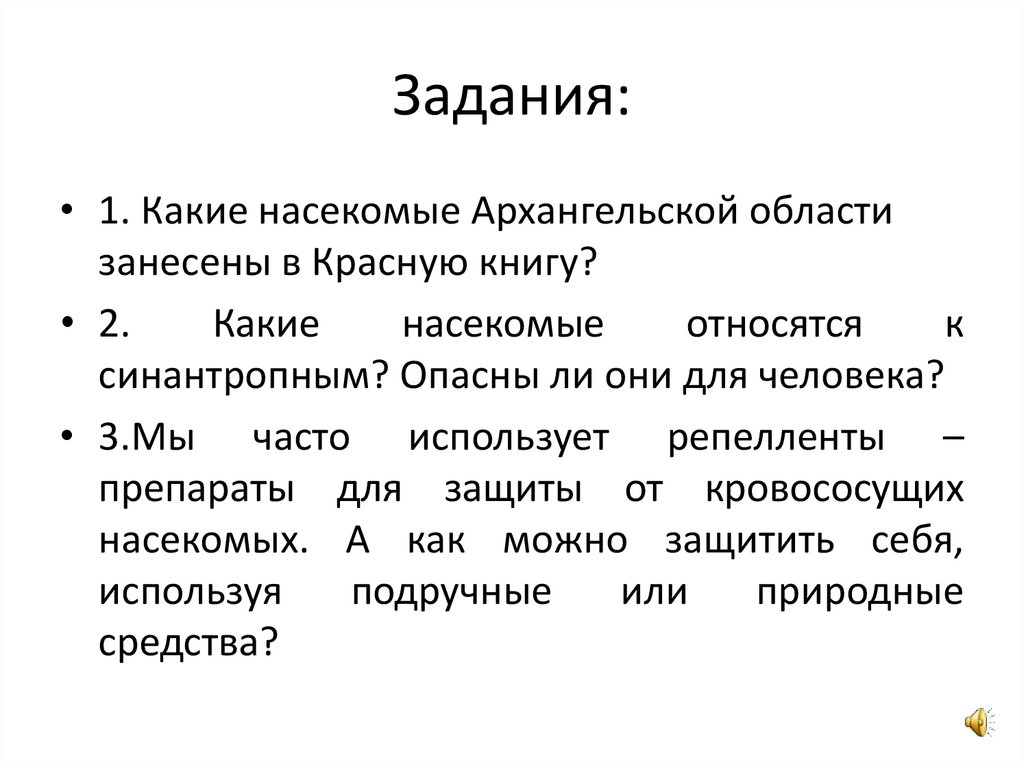 Задания:• 1. Какие насекомые Архангельской области