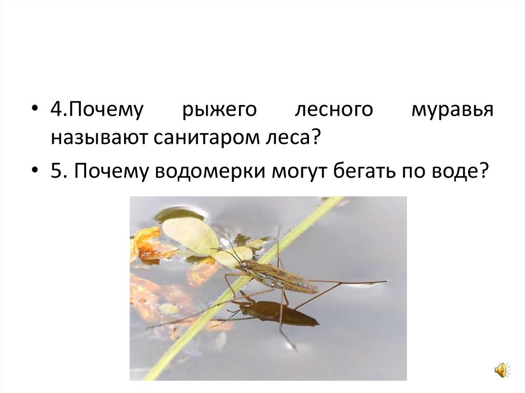 • 5. Почему водомерки могут бегать по воде?