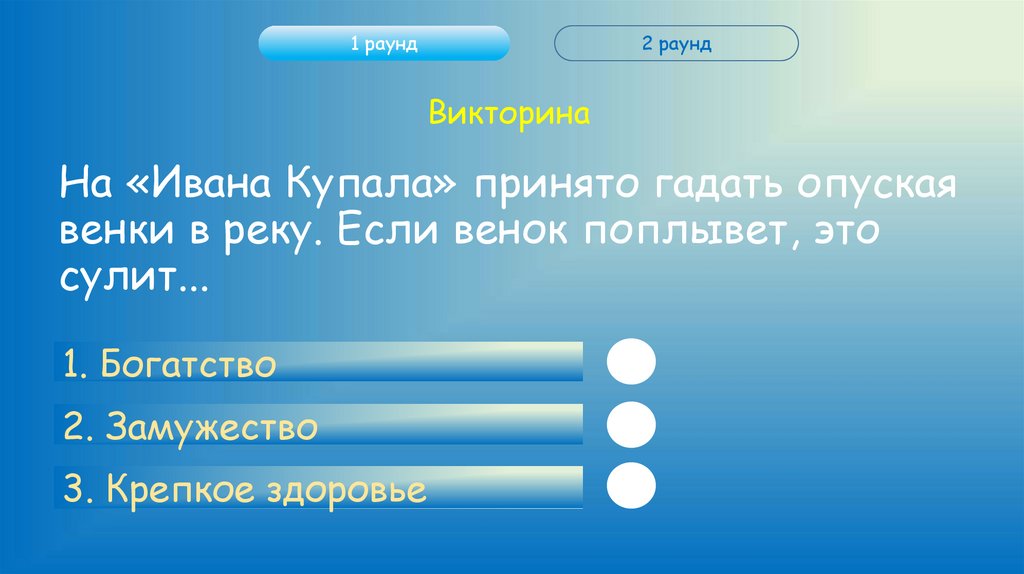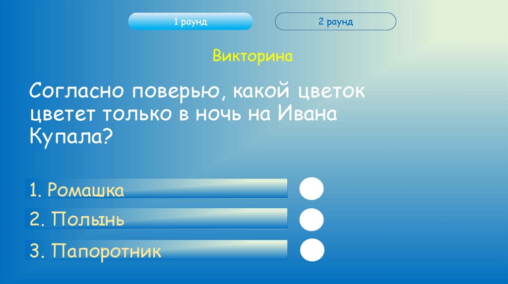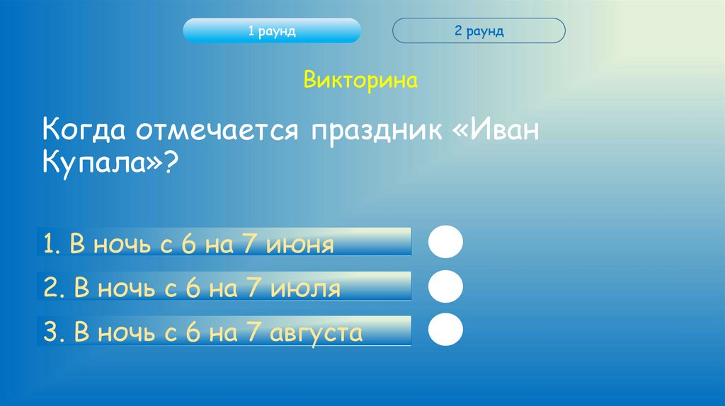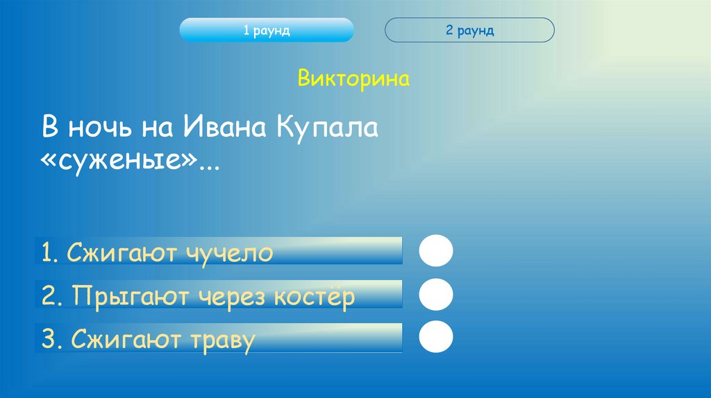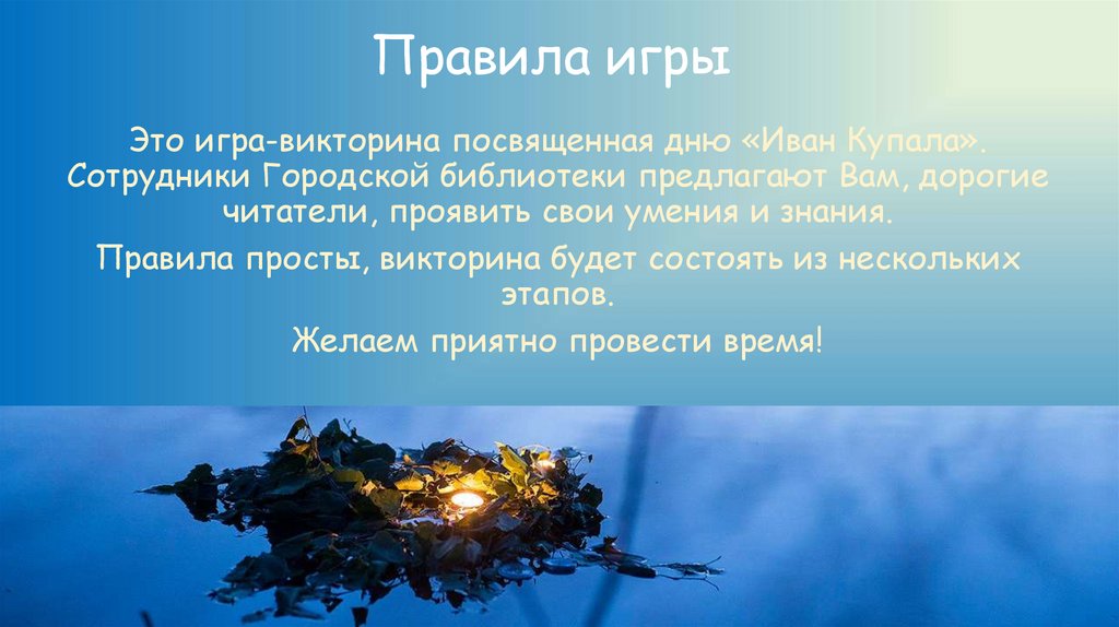 Правила игрыЭто игра-викторина посвященная дню «Иван Купала».