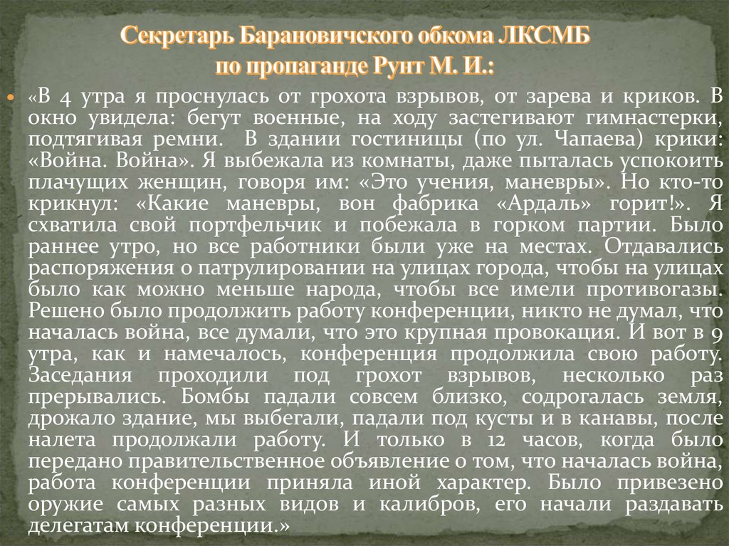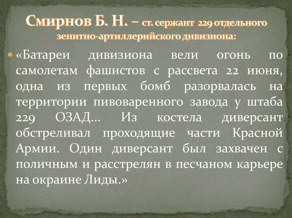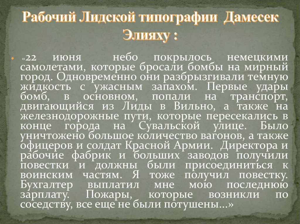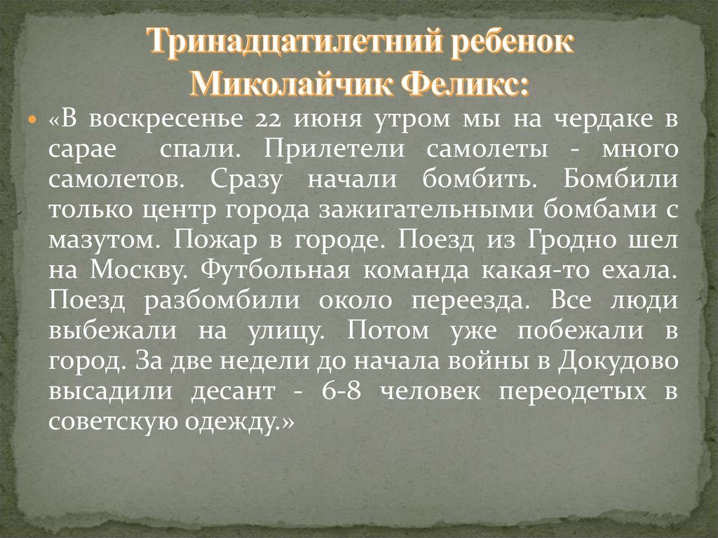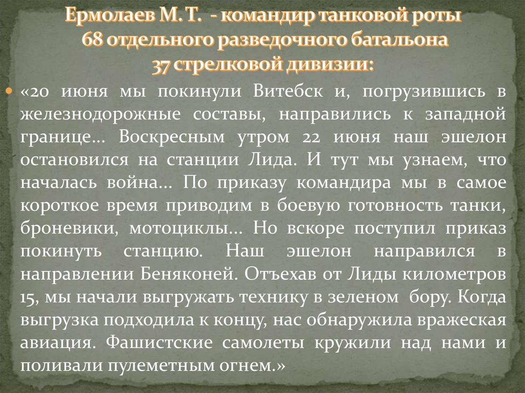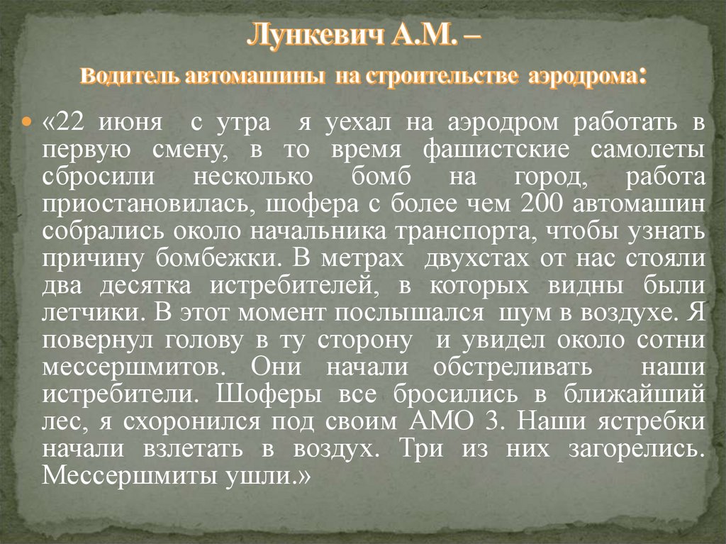 «22 июня меня и моих товарищей засталапри Лидском аэродроме внезапная война. С