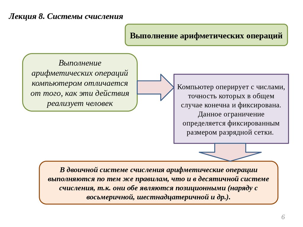 Лекция 8. Системы счисленияВыполнение арифметических операций