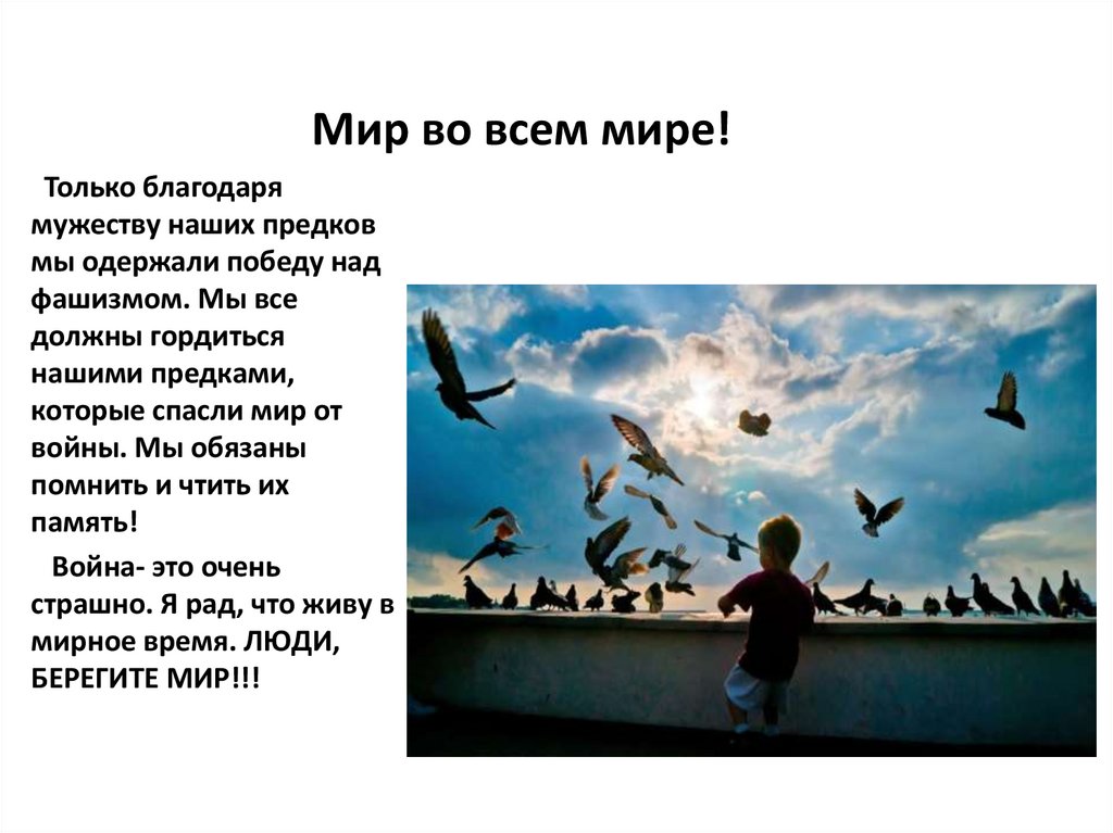 Мир во всем мире!Только благодаря