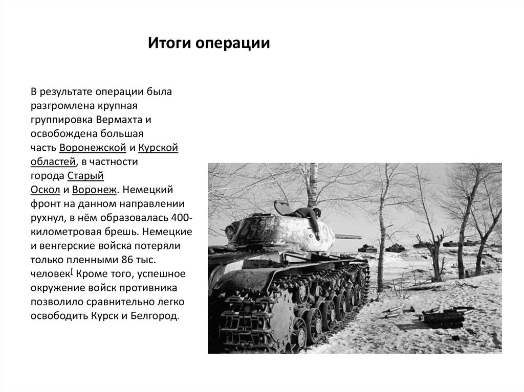 В результате Острогожско-Россошанской операции войска