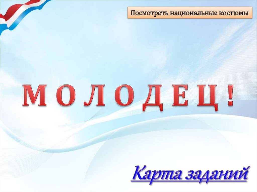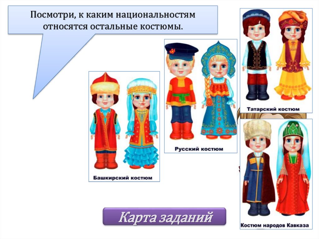 Посмотри, к каким национальностямотносятся остальные костюмы.