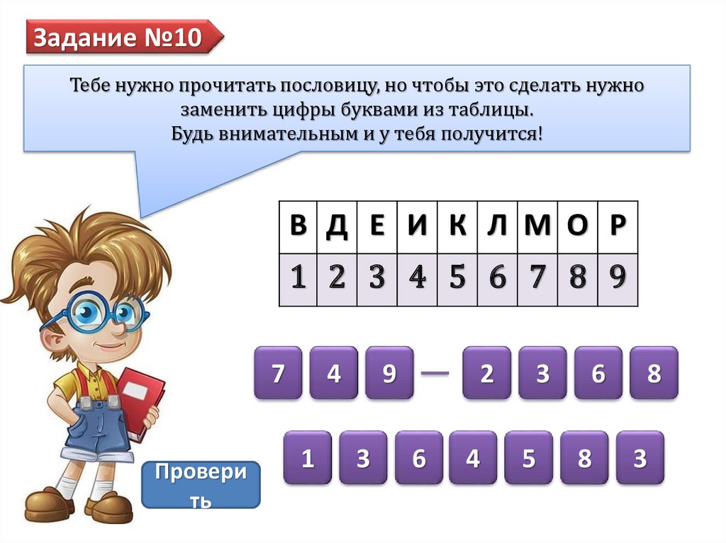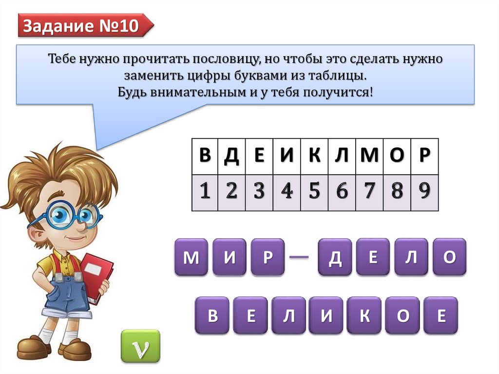 Задание №10Тебе нужно прочитать пословицу, но чтобы это сделать нужно