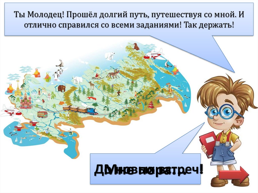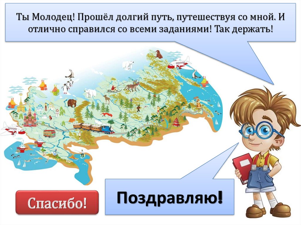 Ты Молодец! Прошёл долгий путь, путешествуя со мной. Иотлично справился со всеми заданиями! Так держать!