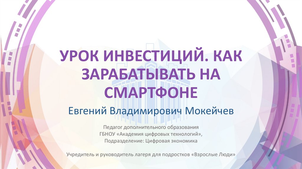 УРОК ИНВЕСТИЦИЙ. КАКЗАРАБАТЫВАТЬ НА