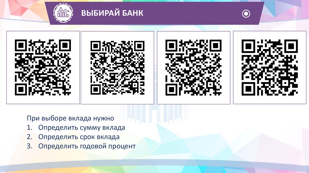 ВЫБИРАЙ БАНКПри выборе вклада нужно