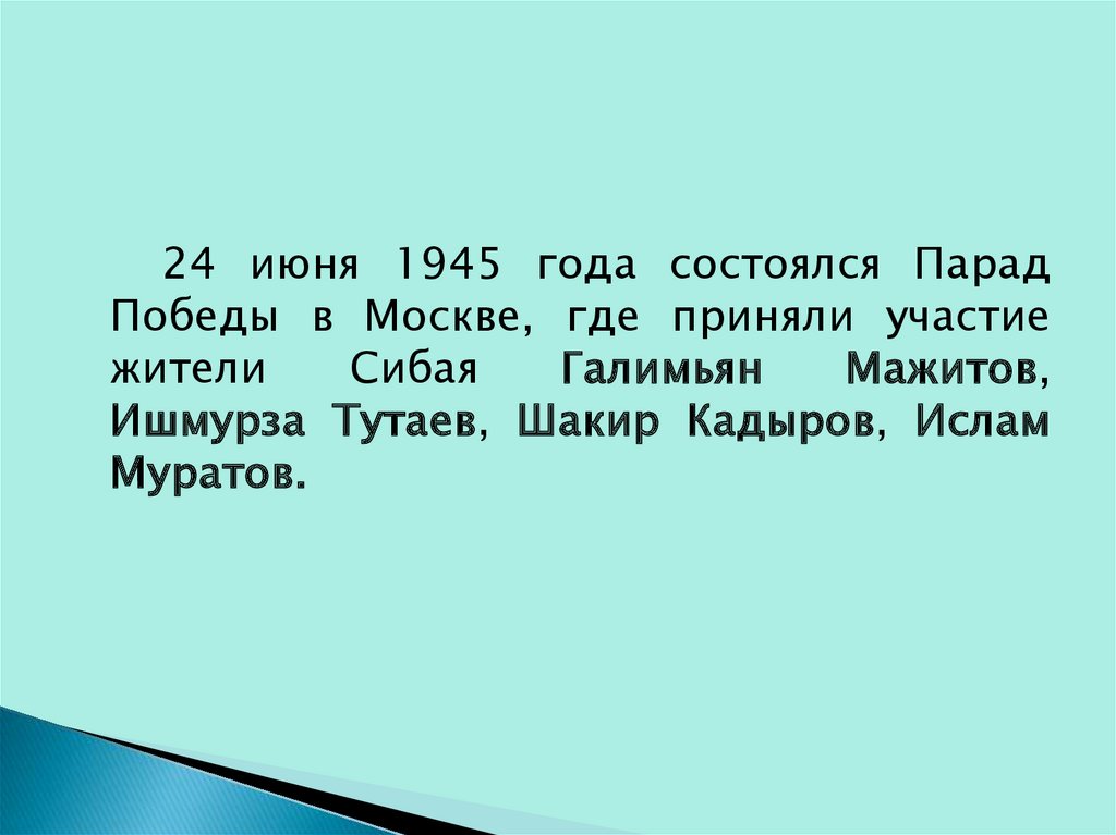 24 июня 1945 года состоялся ПарадПобеды в Москве, где приняли участие